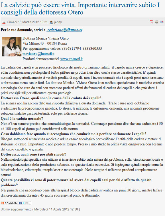 Di seguito trovate le interviste pubblicate alla Dottoressa Otero.